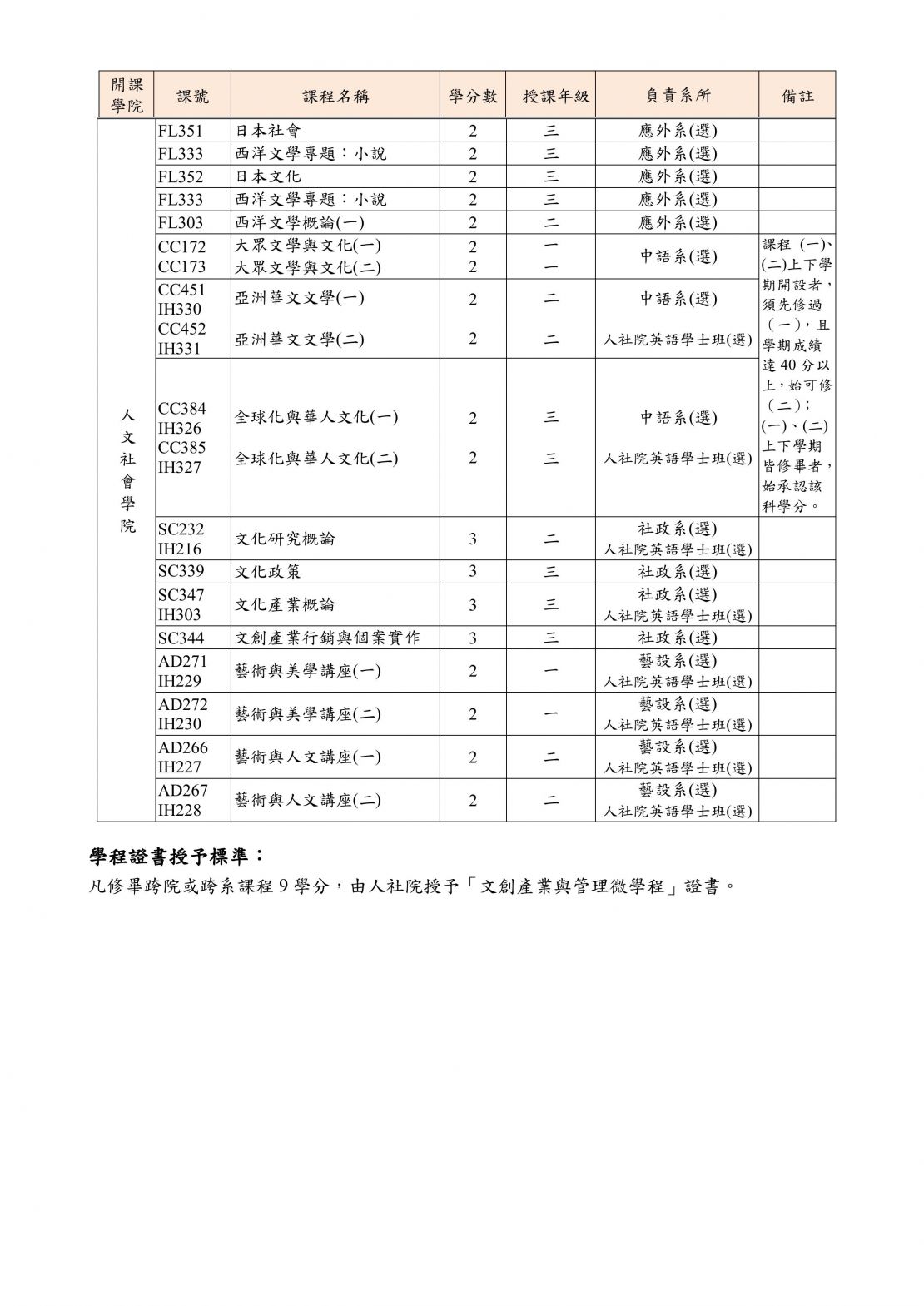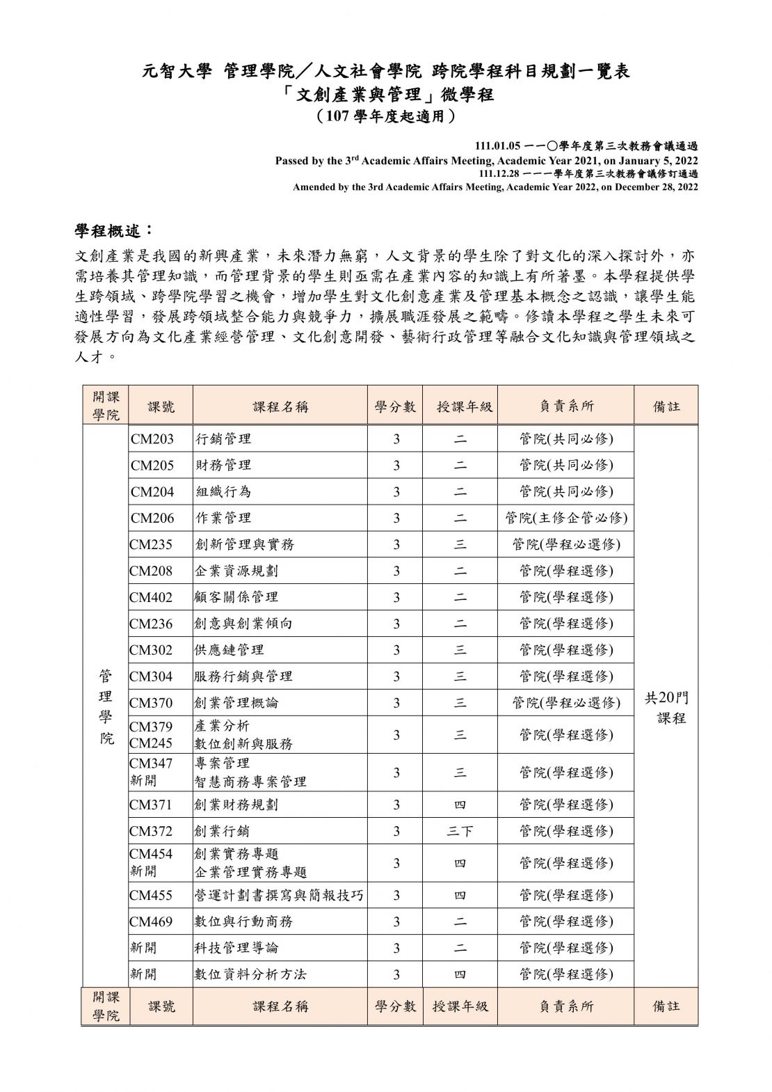 「文創產業與管理」微學程