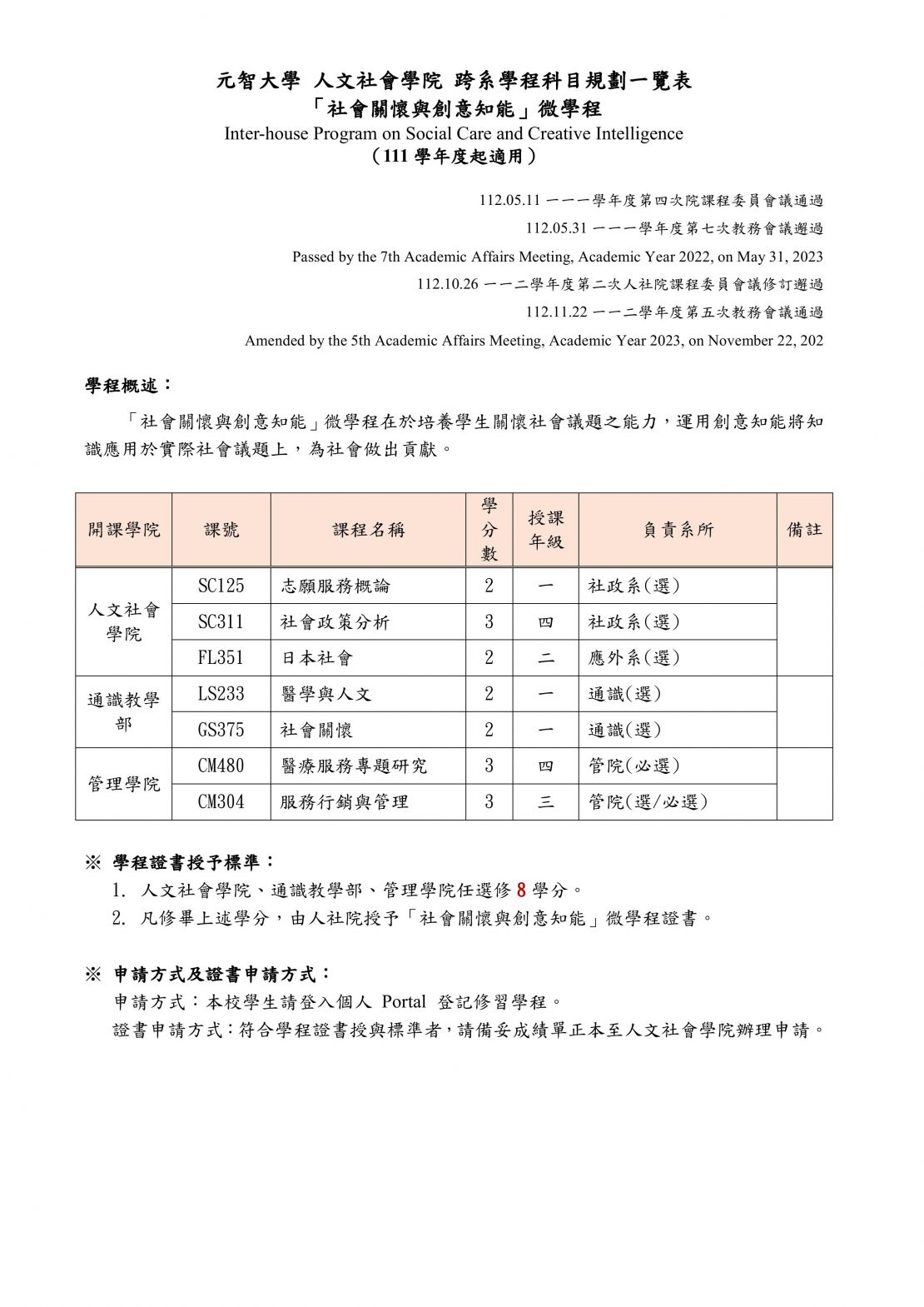 「社會關懷與創意知能」微學程