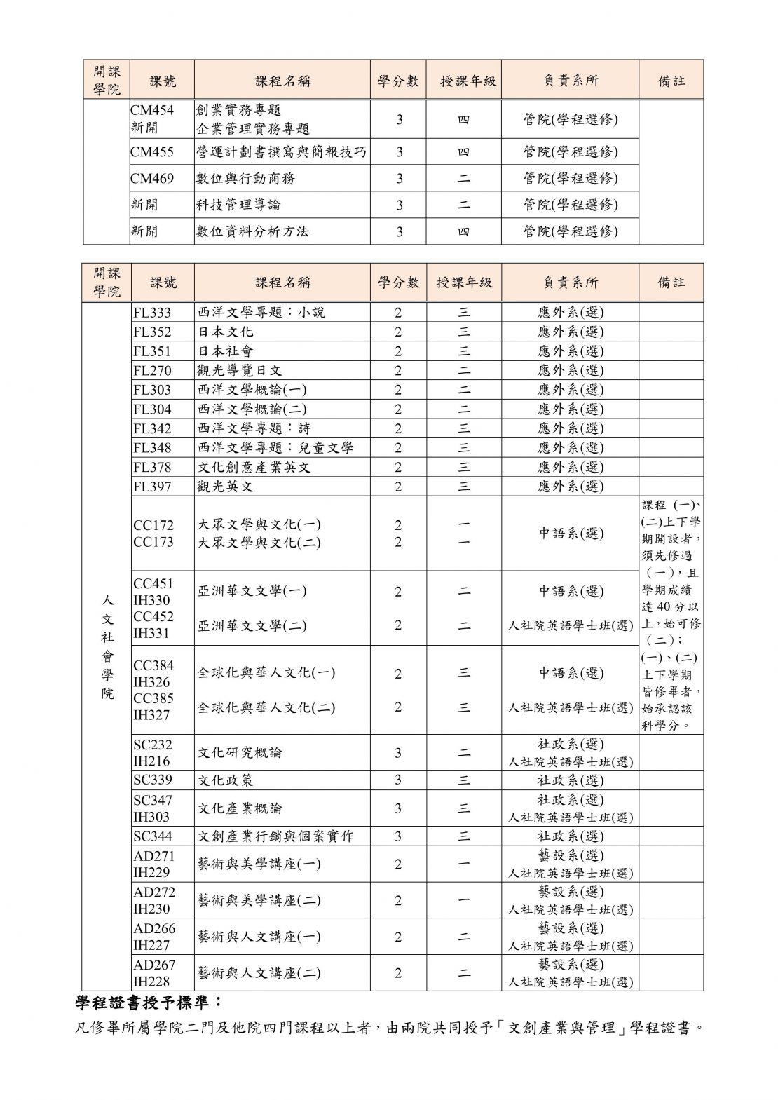 「文創產業與管理」學程
